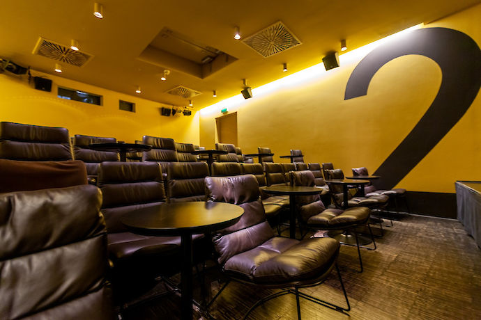 Die Kinobestuhlung verschwindet, die große Bühne ist ausfahrbar und eine eigene Bar im Saal versorgt die Besucher*innen mit frischen Getränken. Als reiner Stehplatzsaal oder auch in einer gemischten Variante mit Sitz- und Stehplätzen der perfekte Raum für Konzerte, DJ-Lines und Partys, egal ob Weltmusik, Techno oder Indierock.