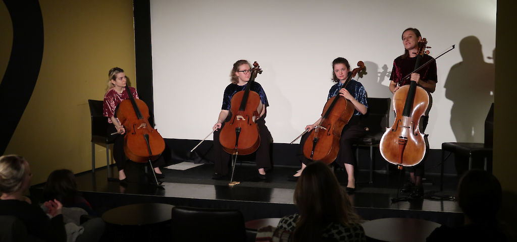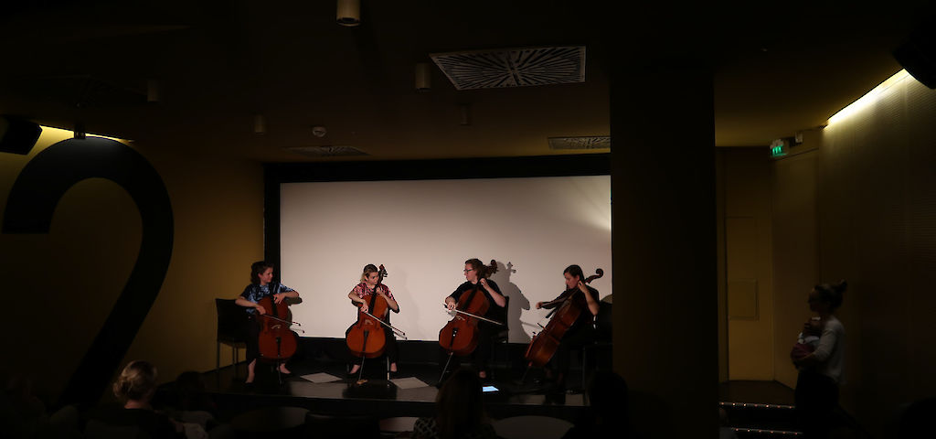 Fantastisch war nicht nur der Auftakt der diesjährigen Jeunesse Saison im Cinema Paradiso, sondern auch die Musik der vier Kolophonistinnen. Bei gedämmtem Licht und ruhiger Umgebung konnten sowohl Eltern als auch Babys in die grenzenlose Welt der Musik abtauchen und sich im Beislkino entspannen.